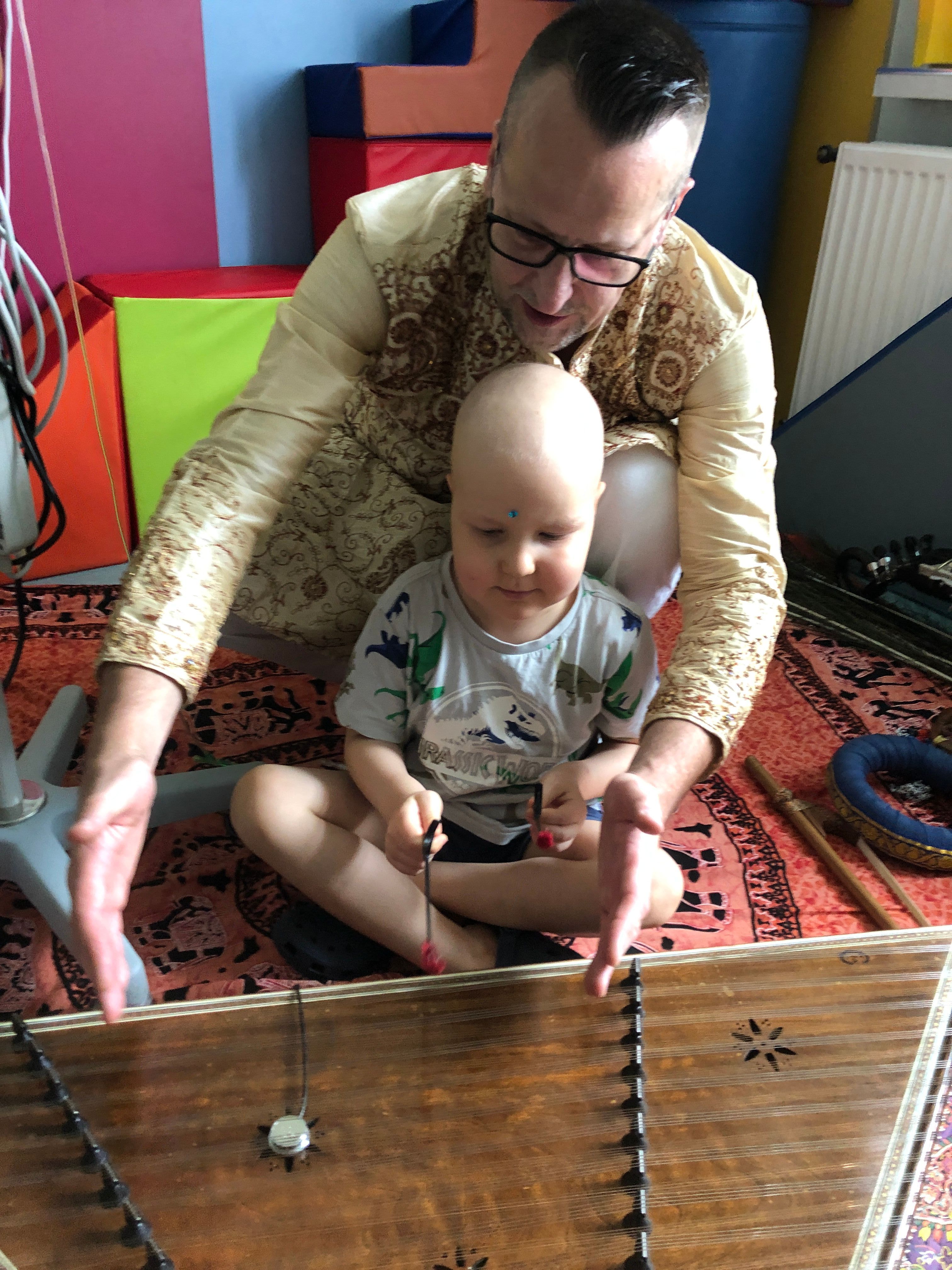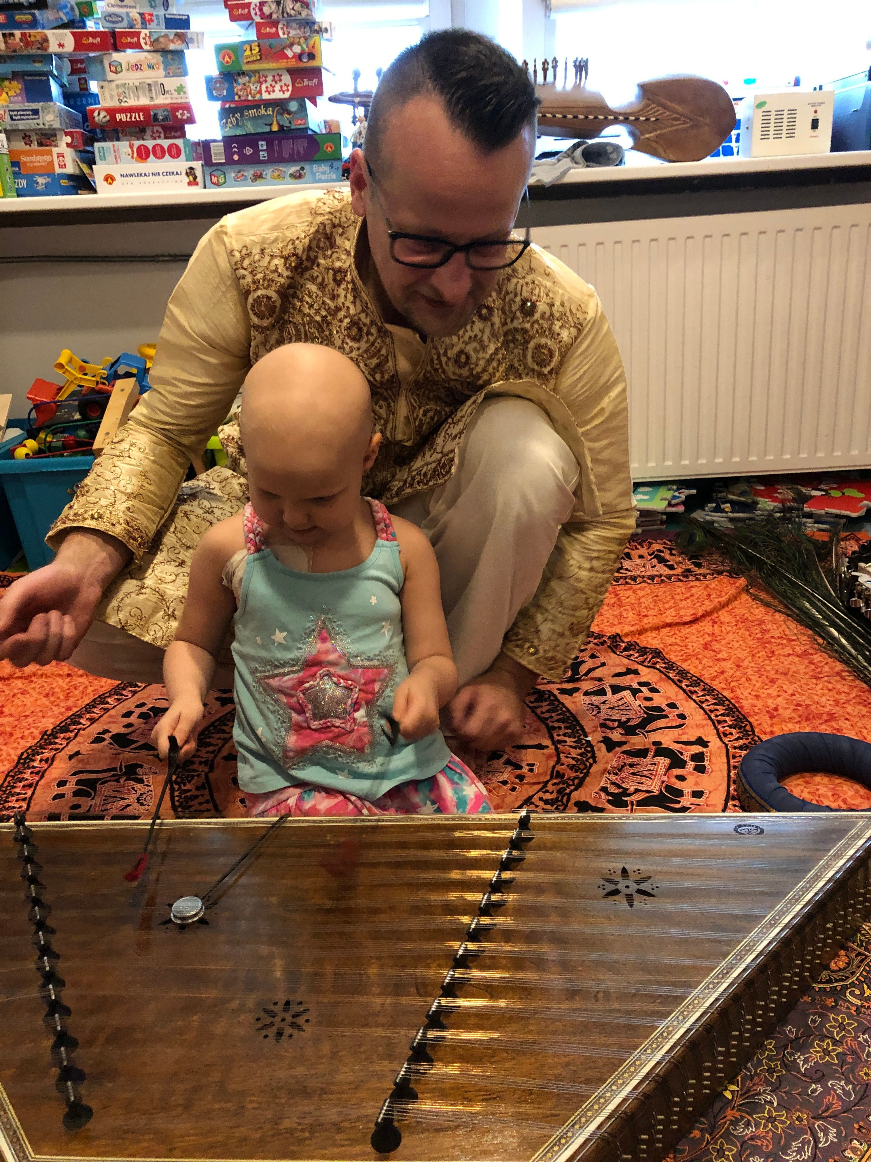 26 sierpnia na oddziałach onkologicznych w Katowicach i Zabrzu miały miejsce muzyczne warsztaty z Grzegorzem Surówką i Tomaszem Podgórskim. Dzieci nie tylko mogły wczuć się w dźwięki muzyki, ale same spróbować swoich sił w grze na nietypowych instrumentach., takich jak djembe, taus - instument z pawich piór, rubab czy santur. Dziękujemy Wam, Panowie!